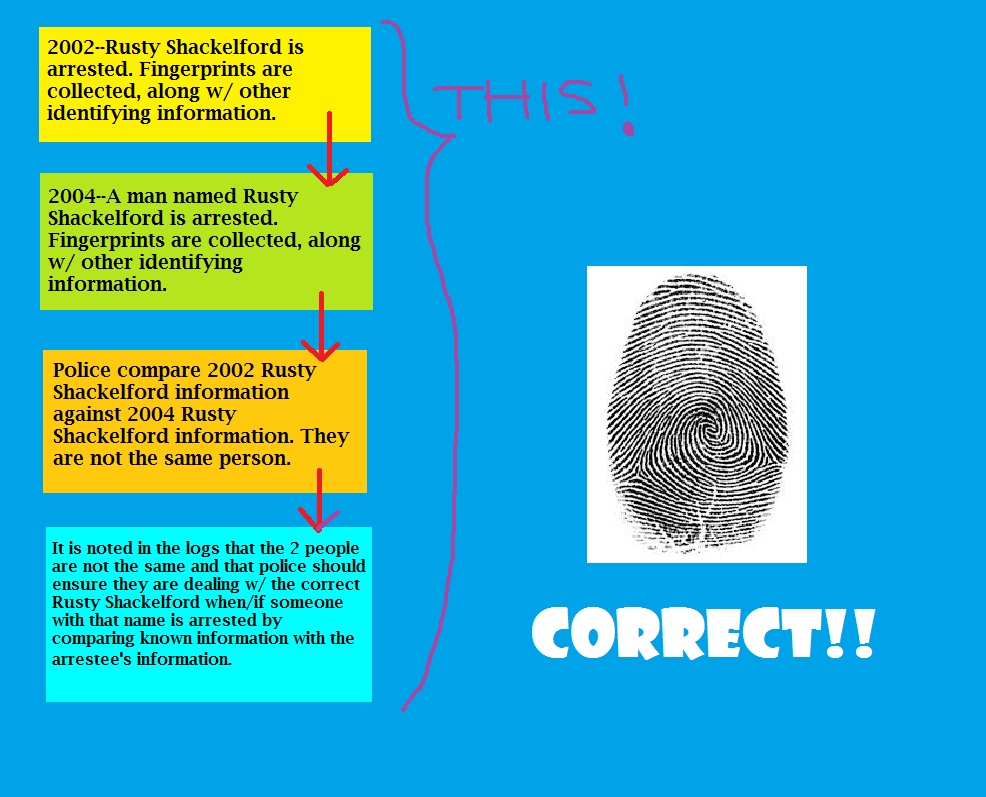 If you read the majority's opinion, you would think that the DNA sample was taken, immediately processed, and matched w/ another known DNA sample for the defendant. That's how fingerprinting should work, ideally. Here's a helpful chart explaining this w/ colors and pictures because who wants to read all this?? (Click on the photo and it will open up into a bigger image).
